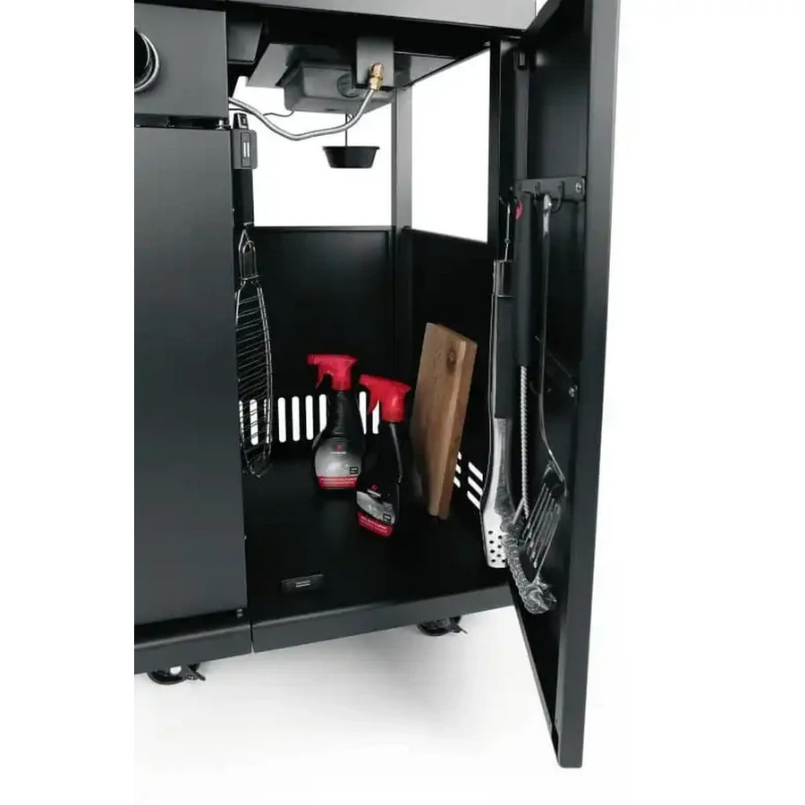 • Kihajtható oldalsó asztallal a grillkiegészítők, tányérok, mártások és egyéb tárgyak tárolásához